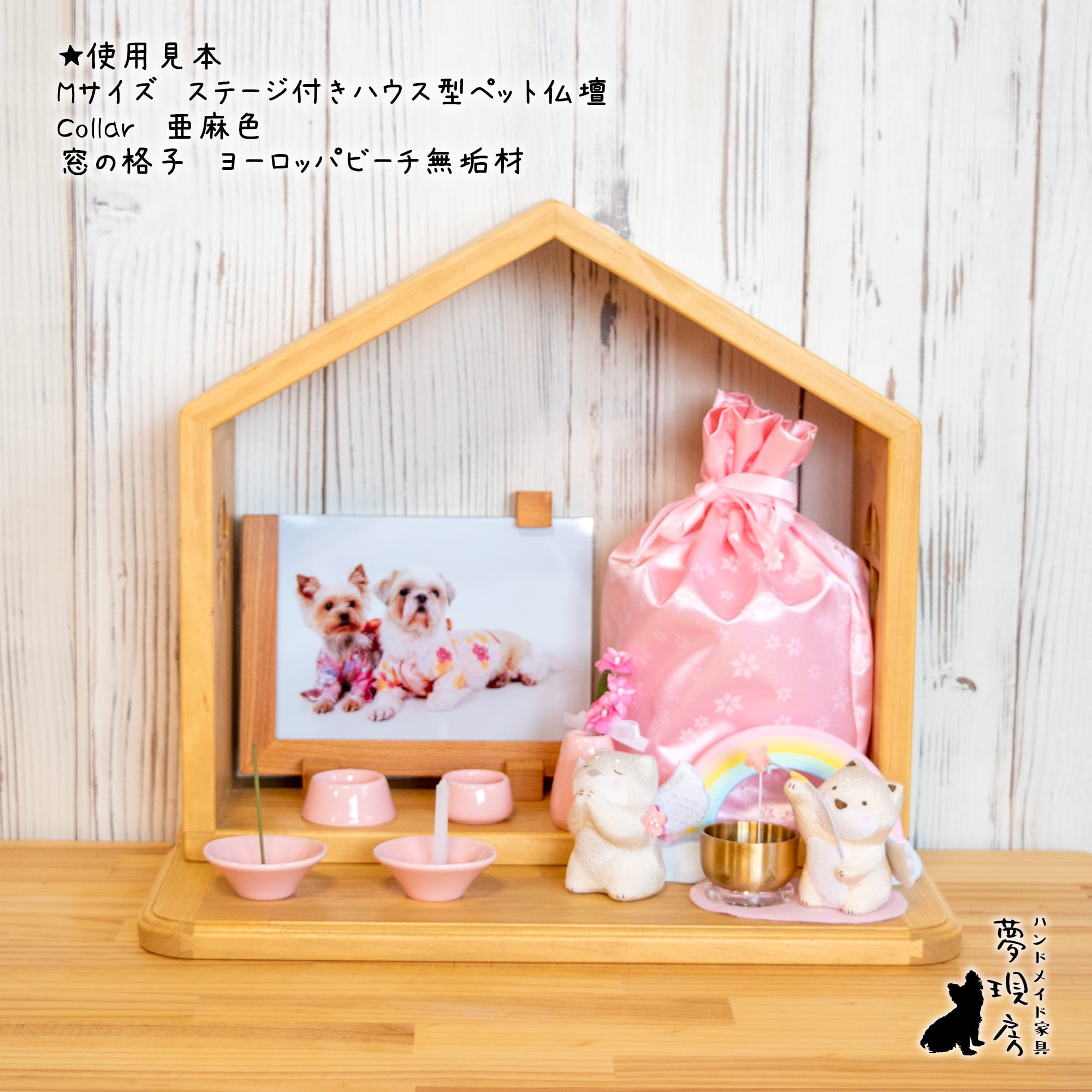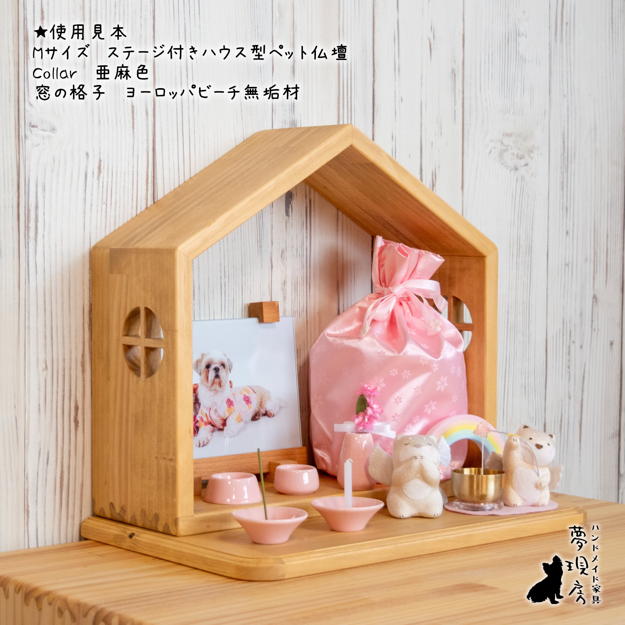 ★Mサイズ 背板付きが選べるステージ付きハウス型ペットミニ仏壇 手元供養 ペット供養 犬・猫